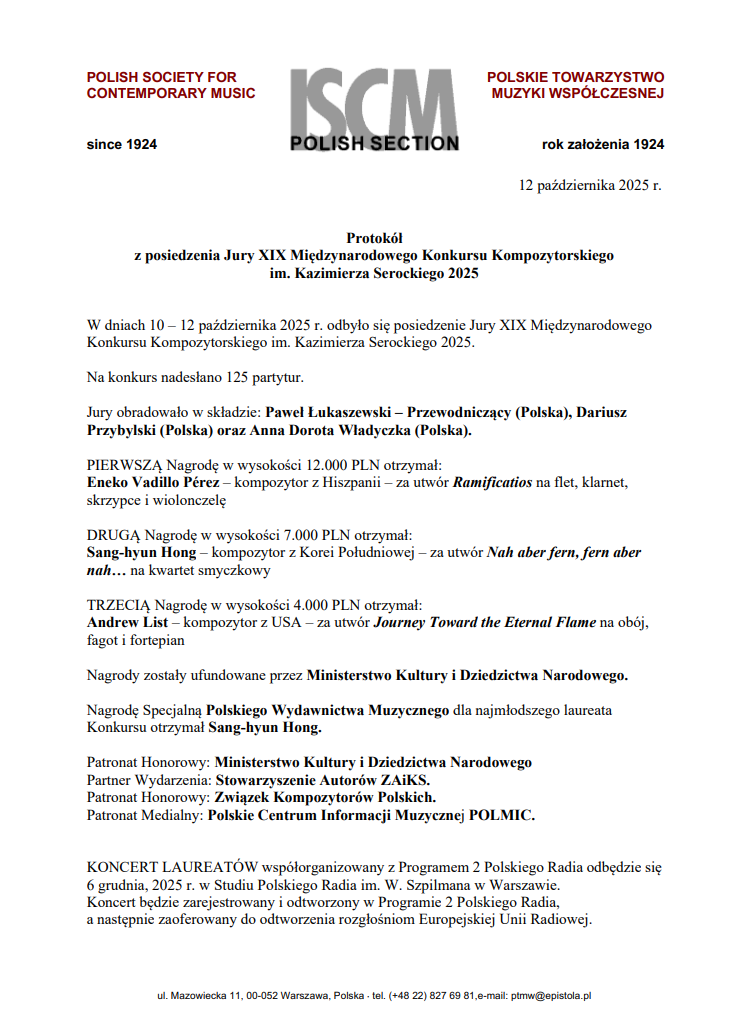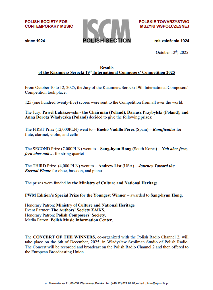 we already know the results of the Kazimierz Serocki 19th International Composers' Competition 2025!